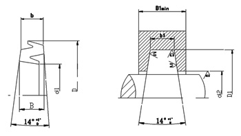 基本尺寸d1 | 基本尺寸D1 | 基本尺寸d2 | 基本尺寸b1 | 用于鋼B1min | 用于鑄鐵B1min | |||||